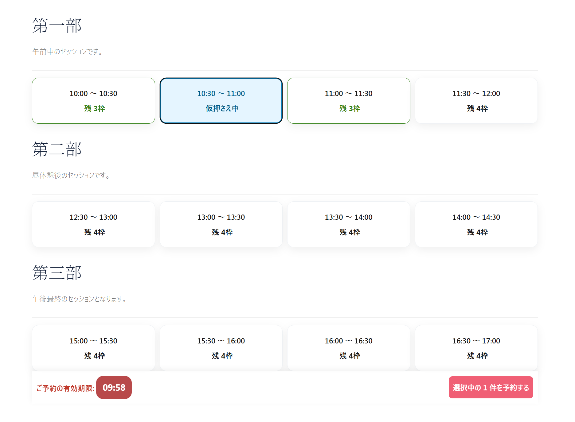 1回だけの単発イベントを、複数の場所で開催する場合は運用の手間がかかる上に柔軟な予約管理が困難でした。
